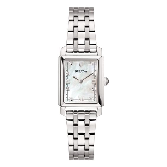 Orologio donna solo tempo modello Sutton Tank. Cassa rettangolare in acciaio lucido. Movimento al quarzo ore minuti. Quadrante in madreperla con 8 diamanti incastonati e certificati, lancette lucide. Vetro minerale. Bracciale regolabile in acciaio lucido e satinato, chiusura a farfalla con pulsanti. Scatola Certificato Diamanti Libretto e Garanzia 5 anni Originali.