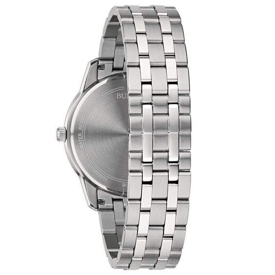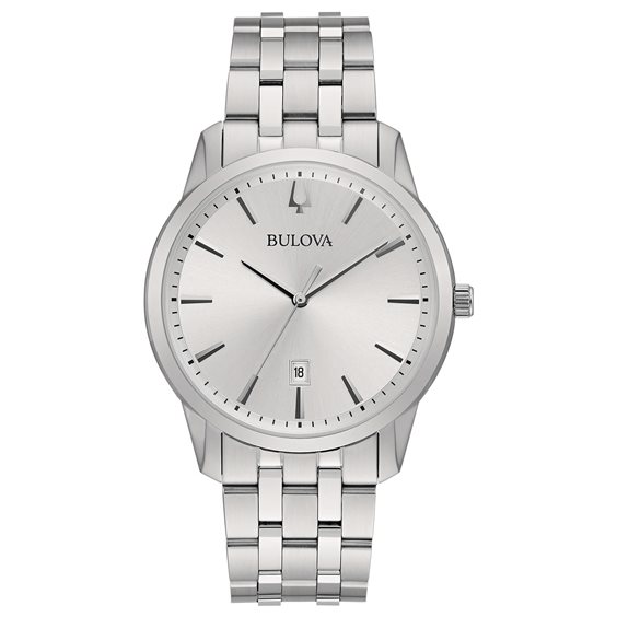 Orologio Bulova da uomo della collezione Sutton, Movimento al quarzo, Cassa e bracciale in acciaio, Diametro cassa 40 mm, Resistenza all'acqua fino a 30 metri. Cassa e bracciale in acciaio inossidabile con quadrante grigio per questo orologio Bulova 96B342 con finestra del calendario a ore sei. Cristallo minerale bombato. Fibbia deployante.