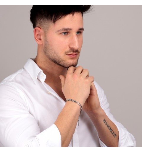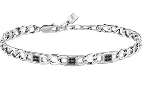 Bracciale uomo , acciaio 316L , catena maglia groumette, lunghezza cm 22 regolabile , centrali con cristalli neri incastonati. Scatola e garanzia originali.