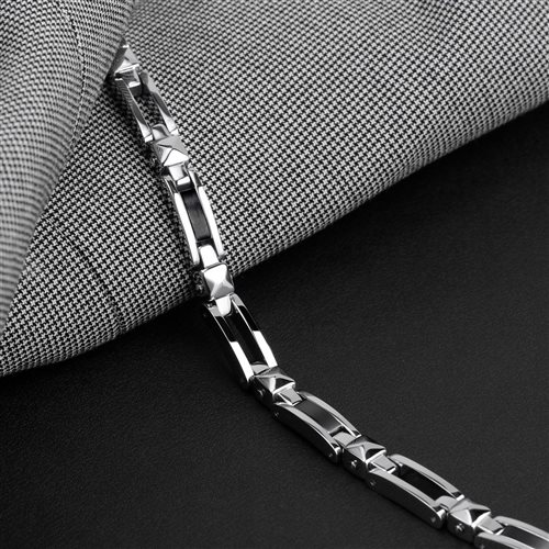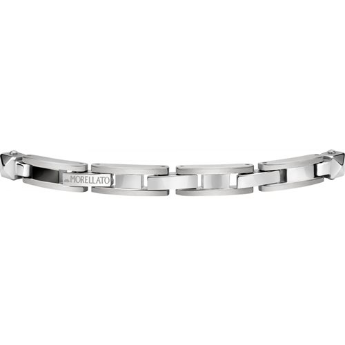Bracciale uomo , acciaio 316 L , lunghezza cm 21 , accorciabile , elementi in ceramica nera. Immagine indicativa , la confezione può variare di forma e colore.